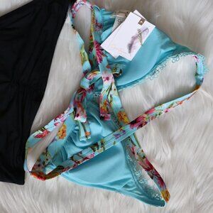 NEW Blue Floral Eden Print Lace Bikini Set Sz S
