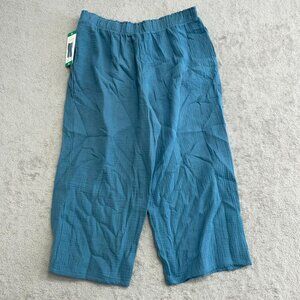 NEW Jessica Simpson Gauze Women's XL Blue Cotton Wide Leg Crop Pants