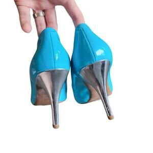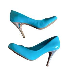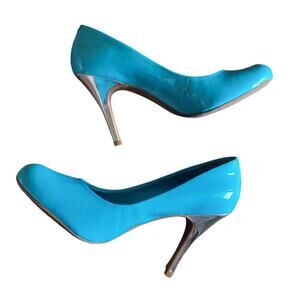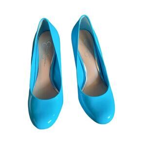 NEW Jessica Simpson Patent Slip On Heels Round Toe Teal Blue Size 8.5