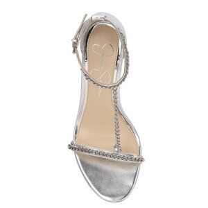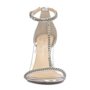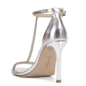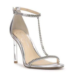 NEW Jessica Simpson Qiven Chain T-Strap Stiletto Heel Sandal in Silver Sz. 10