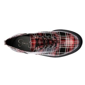 You'll love the quirky side of the Jessica Simpson Sayze oxford. Supported on a chunky platform and heel, this lace-up shoe has plaid prints for a vibrant look and a rubber sole to lend you reliable traction.