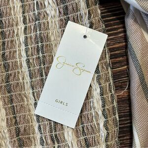 NEW Jessica Simpson Smocked Jumpsuit Big Girls Size L (12) Puff Sleeves Boho Tan