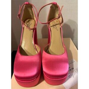 NEW | Jewel Badgley Mischka Pink Satin Rainbow Chunky Platforms JW4628 Sz 8