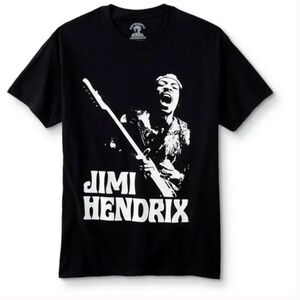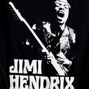 Washed finish new with tag soft black T-shirt from Authentic Hendrix with classic Jimi Hendrix Jamming white design on the front and 70s font