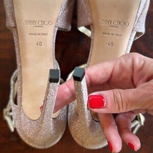 New (no box) Jimmy Choo Strappy Glitter High Heel Sandals with dust bag.