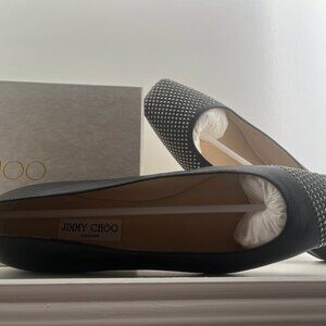 NEW Jimmy Choo Black silver Studded Davia Ballerina SQUARE Flat size 9 9.5 EU 41