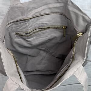 NEW Jimmy Choo Grey Gold Metallic Heel Graphic Print Zippered Tote Bag Purse