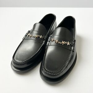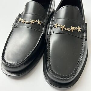 NEW Jimmy Choo Mocca Gold Tone Star Chain Loafers Black Leather Size IT 39 US 9
