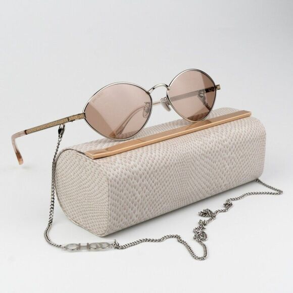 NEW Jimmy Choo SONNY/S 9F6/2S Peach Palladium Pink Silver Oval Metal CHAIN Women Sunglasses