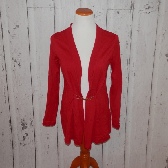 NEW Joan Vass Women Small Red Cardigan Sweater Top