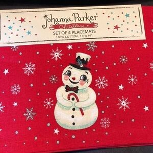 NEW Johanna Parker SNOWMAN PLACEMATS AND KITCHEN TOWELS