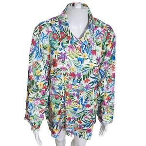 NEW John Mark 2X Linen Floral Print Point Collar 3/4 Sleeve Button Front Tunic