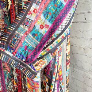 NEW Johnny Was Beatrice Cherie Silk Dress Small Tiered Ruffle Trim Mixed Pattern