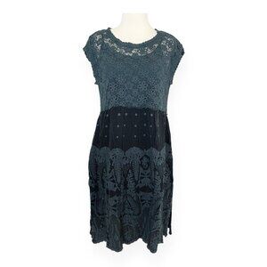NEW Johnny Was Flower Getaway Mini Dress Women’s Small Embroidered Sanded Black