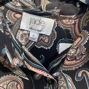 NEW Johnny Was Jade 100% silk paisley button down blouse top tie front Size S