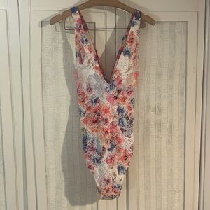 NEW Johnny Was One Piece Swimsuit Summer Days Eyelet Cross Back Floral Sz M