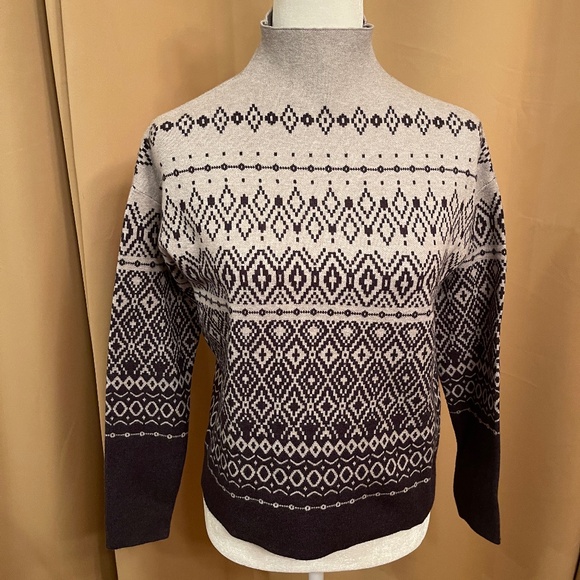 NEW! Joie Fair Isle Grey/Black Funnel, Mock Neck Pull Sweater Size XS