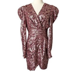 NEW Jonathan Simkhai Silk Metallic Bubble Sleeve Dress Sienna Bubble Gum Size 8