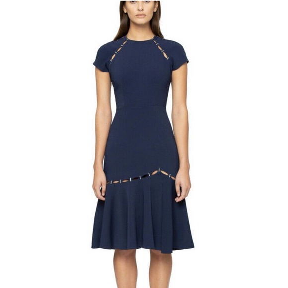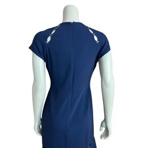 NEW Jonathan Simkhai Stapled Crepe Dress Slashed Blue Flounce Hem Cutout Slit 6