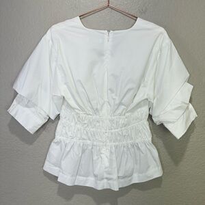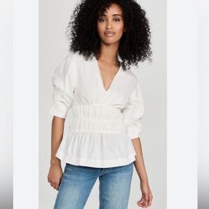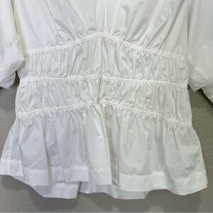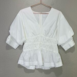NEW Jonathan Simkhai Yuni Cotton Poplin Ruched Blouse White Size 8