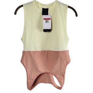 This sleeveless crop top from Air Jordan is perfect for hitting the gym or styling your streetwear. Arriving in a double-layered design, it’s crafted from a stretchy nylon mesh for a breathable feel. It’s colored in contrasting pale yellow and orange shades, then signed off with a woven brand patch at the bottom band.