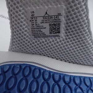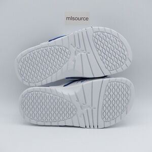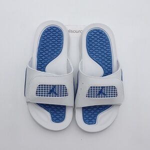 Youth Jordan Hydro 4 Retro Hook and Loop Adjustable Slide Sandals 532226-141 White/Industrial Military Blue - Brand new in box, box is damaged.