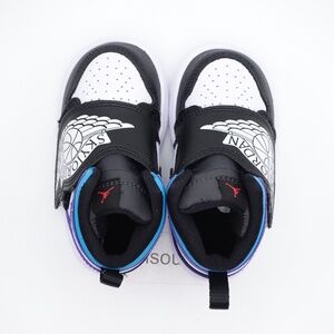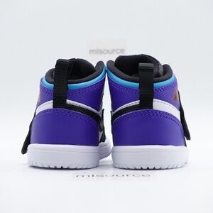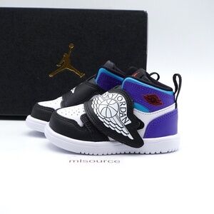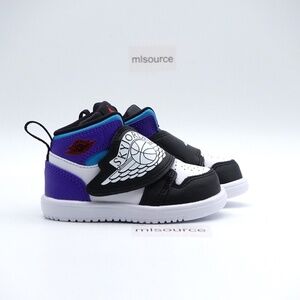 Toddler's Jordan Sky Jordan 1 Sneakers BQ7196-154 White/Black/Bright Concord/True Red - Brand new in box, box is damaged.