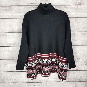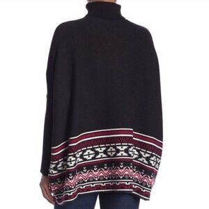 Joseph A S Turtleneck Sweater Pullover Poncho Black Tribal Aztec Print NWT $78
