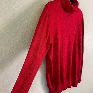 NEW Joseph A Womens XL Red Metallic Turtleneck Sweater Knit Top Long Sleeve