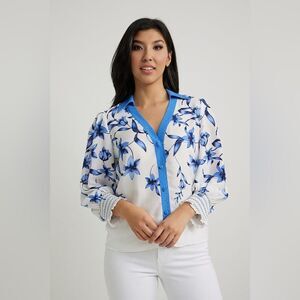Calming blue florals complement this top's polka dot print, giving you a design that can only be Joseph Ribkoff. With its dreamy colourway and billowy fit, this piece is the perfect choice for summer!