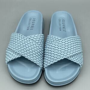 NEW Journee Collection Women’s Gretie Treaded Slide Sandals Blue Size 7.5