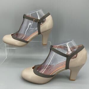 NEW Journee Collection Women’s Olina Mary Jane T-Strap Heels Gray Size 8WD