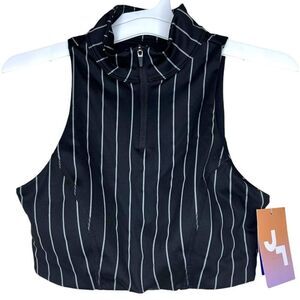 NEW JoyLab Black White Stripe High Neck Zip-up Bra XS
