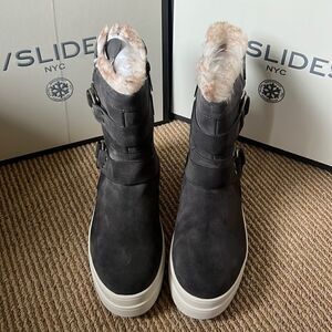 NEW- J/slides faux fur waterproof boots tan suede 8.5