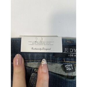 Introducing these stunning Judy Blue jeans in a dark blue wash. These slim boot jeans are designed to fit women of regular size with a high rise. Made with quality fabric and construction, they feature a solid pattern and slimming stretch features. The jeans are branded with Judy Blue and available in size 5/27. Perfect for any occasion, they will make a statement and complement your wardrobe.