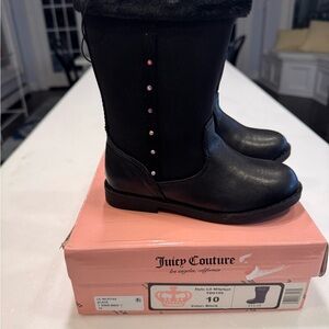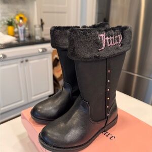 BRAND NEW in the box girls Juicy Couture black boots. Faux fur trim rhinestone logo & trim. Size 10. MSRP $65