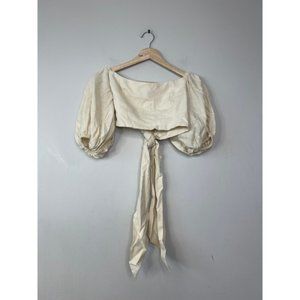 Just Bee Queen Liza Bow Tie Crop Top in Linen Blend Women's Beige. New without tag!