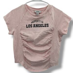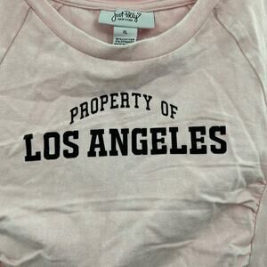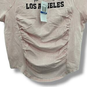 NEW Just Polly Baby Tee Size XL Light Pink Los Angeles Ruched Cropped Top Sporty