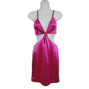 Barbiecore, Valentine's Day, Galentines Day, holiday, Christmas, New Year's, anniversary, special occasion, date night, girls night out, day to night, party, Satin, pink, hot pink, Fuschia, Cut put, bodycon, sexy, mini