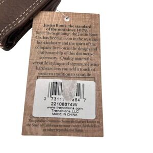 Keywords: Justin wallet, men's wallet, brown leather wallet, RFID wallet, western style wallet, new with tags, gift for him, bi-fold wallet, leather, casual wallet, card holder, coin pocket, Justin Boots, cowboy wallet