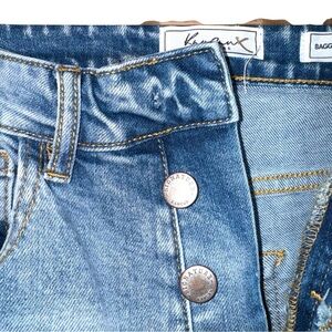 NEW KANCAN Baggy Fit Stretch Ankle Jeans High Rise Button Fly Acid Wash Size 25