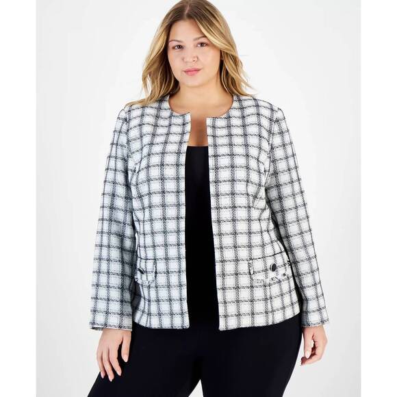NEW KASPER tweed open-front collarless cardigan - plus in vanilla ice multi