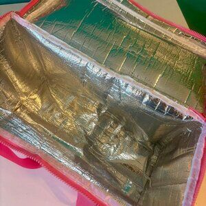The iconic Kate Spade New York brand ensures a high-quality and fashionable item for any woman. This cooler bag features a pink double handle/strap. It is perfect for keeping drinks cool with its insulated design, making it a versatile accessory for any outing.