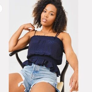 NWT!! 💙 Square-neck top with a smocked peplum hem.