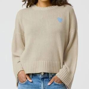 The KERRI ROSENTHAL Summer Sweater in Sand is an exquisite addition to any wardrobe, merging style with comfort. This long-sleeve piece is crafted from a luxurious 55% silk, 45% linen blend, featuring a textured loose knit with contrast tipping at the hem and cuffs, and a charming felted heart appliqué on the chest. The sweater is a pull-on style, imported, and ideal for travel, embodying a timeless 90s fashion vibe suitable for summer occasions like the 4th of July. Care for it by machine washing cold and laying flat to dry.