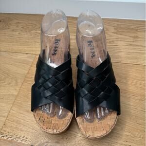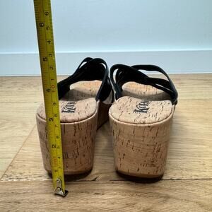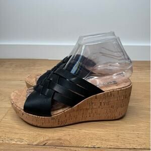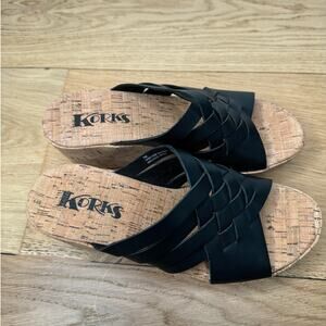 NEW KORKS Noelle Black Vegan Leather Cork Strappy Wedge Sandal Size 7