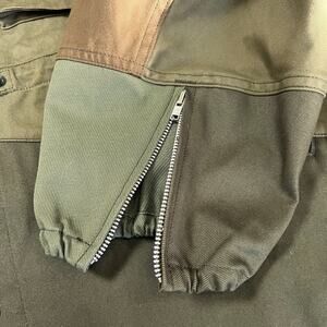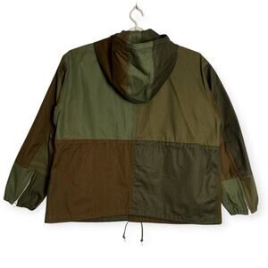 NEW KUON Patchwork Hooded Zip Jacket MENS L Olive Oversized Loose Fit 100% Cotton NWT