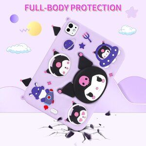 NEW KUROMI IPAD Pro 11" Silicone CASE Strap, stand PURPLE CUTE NWT