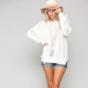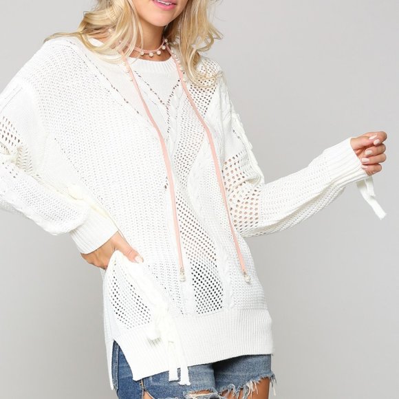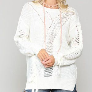 Pointelle stitching creates the cutest perforations on this cozy slouched sweater.