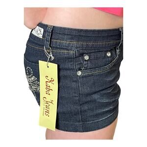 NEW Kaba JEAN SHORTS Size 7 Dark Blue Denim Stone Stud Bedazzled Double Lasso - New In Package With Tags!